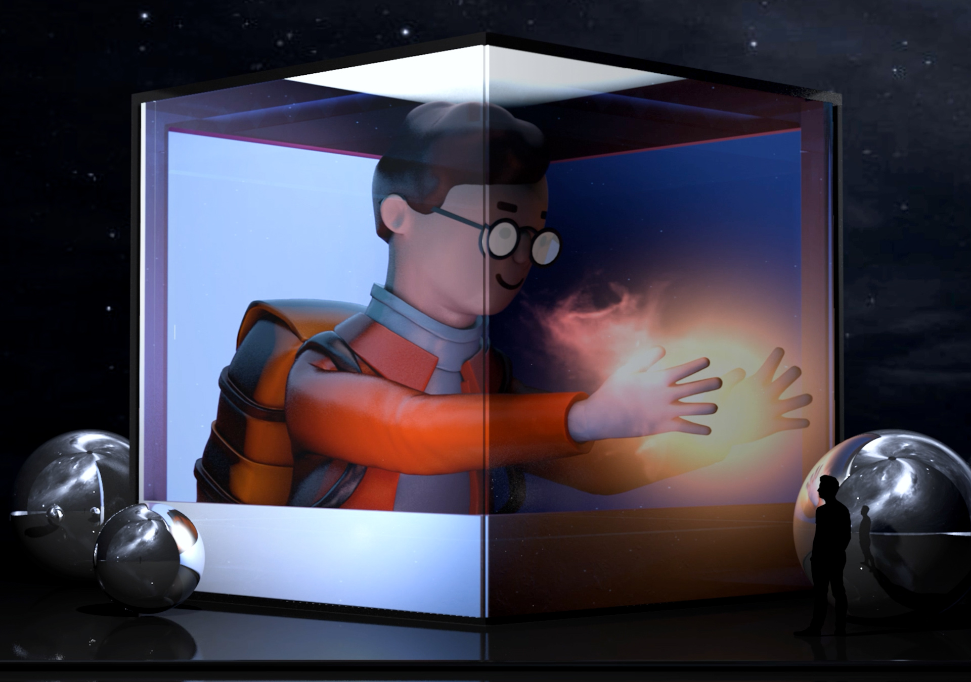 Led Cube Virtual Display. Christmas Lights Trails 2023
